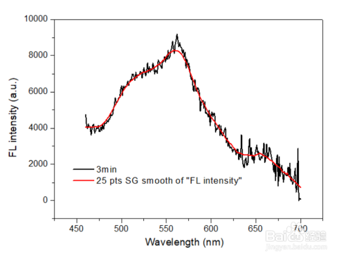 进入光滑处置对话框(Signal processing: smooth),本家儿要存眷两项:Points of Window暗示介入运算的数据数目,该值越大,光滑度越高;Polynomial Order暗示多项式的阶数,有1、2、3、4、5五个数值可供选择,分歧的阶数运算下,光滑曲线略有差别!初始值Points of Window的个数设为5,Polynomial Order的阶数设为2;