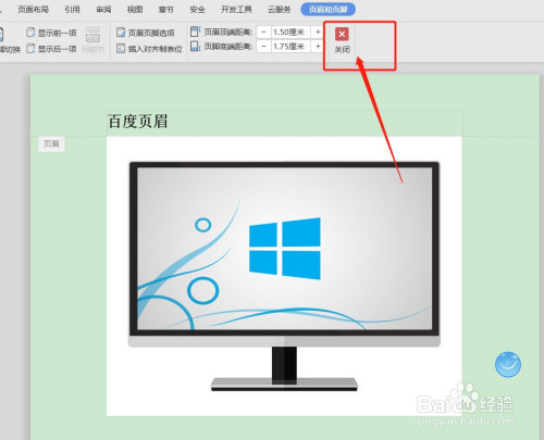 页面和页脚输完后,点击东西栏里的【封闭】