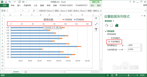 选择次坐标轴,在“坐标轴选项”中点选“逆序刻度值”。此步很是关头,选择后可以看到次坐标轴的刻度值逆转,从右到左逐渐扩大。“通俗数据系列(蓝色条)”的绘制偏向也随之发生了改变。这个操作是形当作对称结果的根本。本家儿坐标轴和次坐标轴的绘制偏向相反。