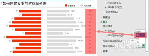 垂直坐标轴标签位置可经由过程“标签位置”和“与坐标轴的距离”进行设置。