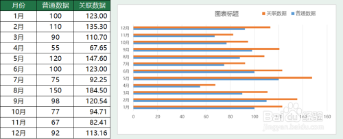 利用肆意两组需要比力的数据生当作通俗的簇状条形图。