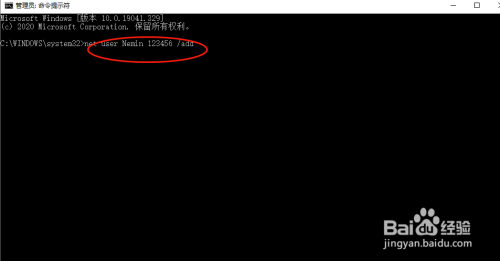输入指令net localgroup administrators Nedmin /add 后按下回车