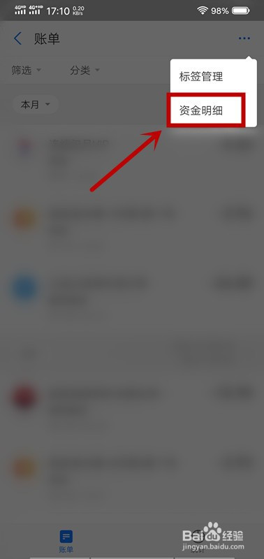 点击账单页面右上角的“···”图标;