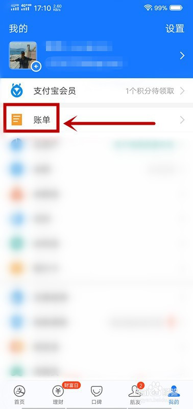 点击我的页面中的“账单”;