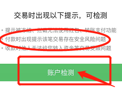 - 提醒被冻结、阻挡红包等也可进行账户检测