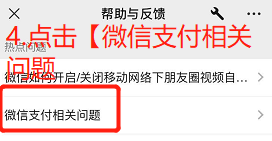 点击进入【帮忙与反馈】页面后,点击【微信支付相关问题】
