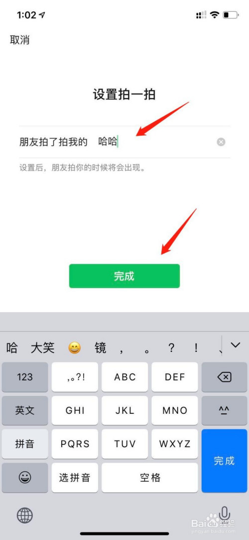 进入拍一拍后添加想要添加的文字然后点击完当作