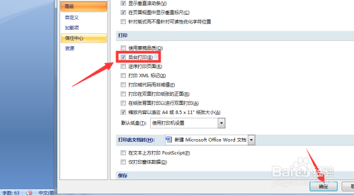 最后在高级页面里找到后台打印,勾选后点击确定即可。