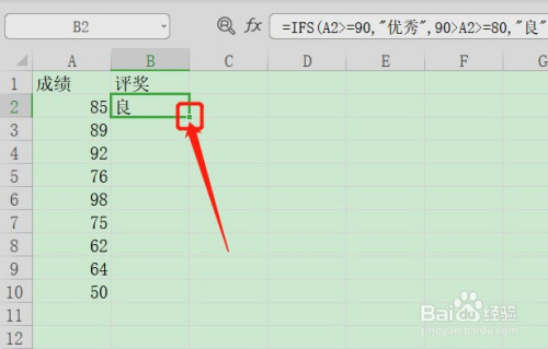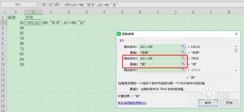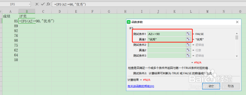 在测试前提1输入:A2>=90