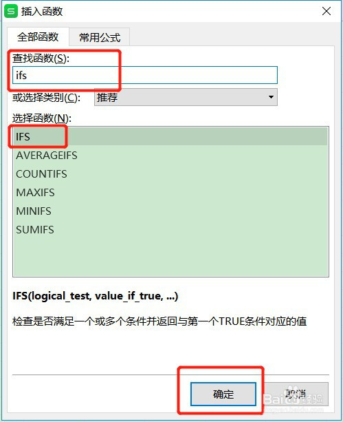 在查找函数框里面输入:ifs