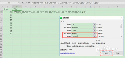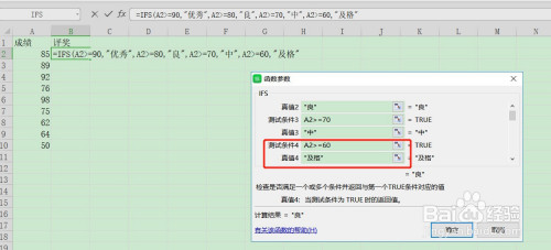 在测试前提4输入:A4>=60
