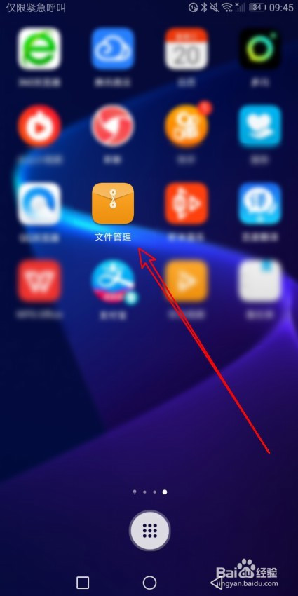 解锁手机屏幕后,摆布滑动点击文件办理的图标。