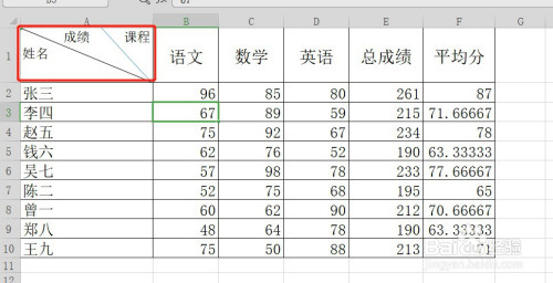 再在表头单位格里面输入文字,调整一下文字的位置就可以了