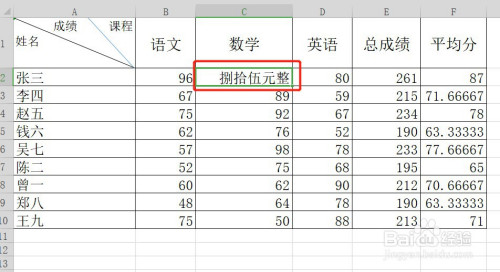 回到表格后,可以看到数字已经转换当作人平易近币大写了