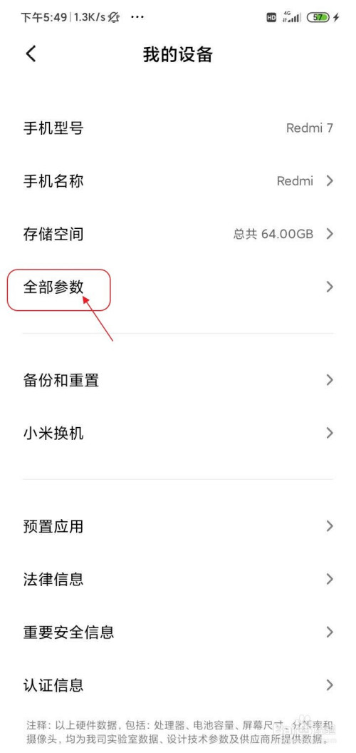 点击全数参数。