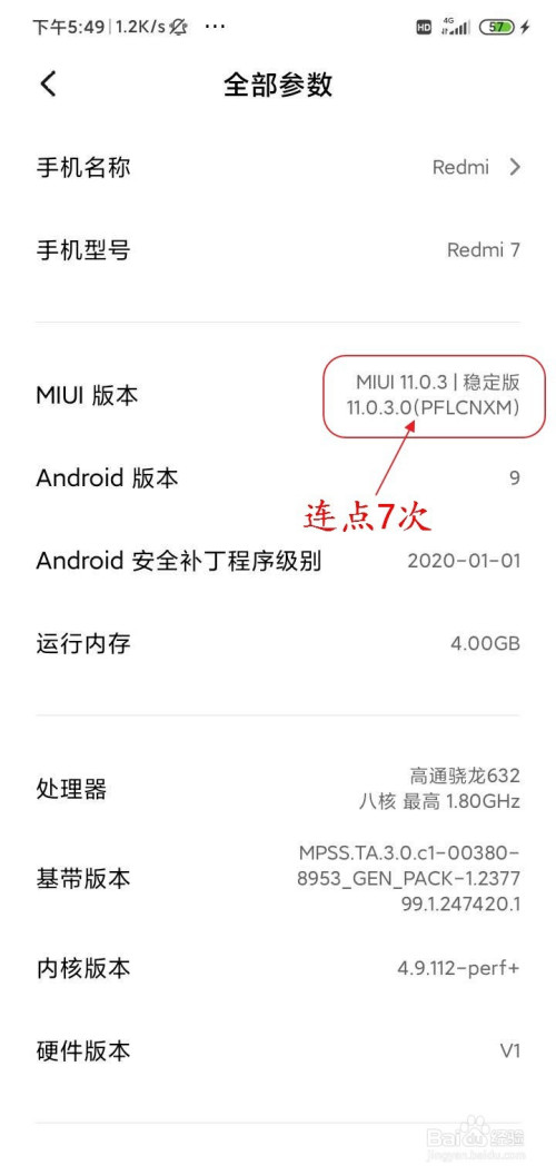 点击MIUI版本7次进入开辟者模式。