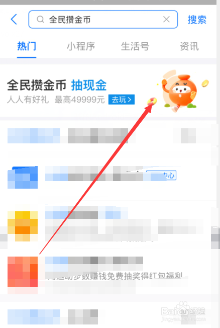 1、手机在支付宝首页搜刮【全平易近攒金币】关头词。