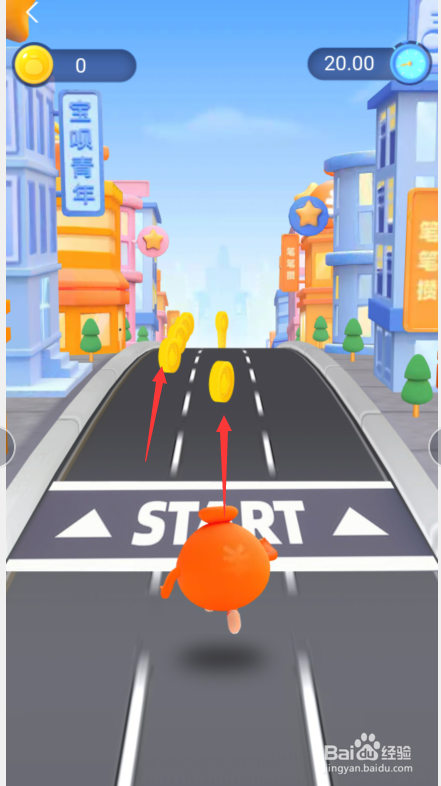 进入游戏后有三条跑道【在金币最多的跑道上进步】。