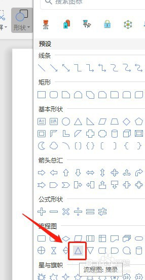 在外形里面找到流程图里面的流程图:摘录图标,单击流程图:摘录