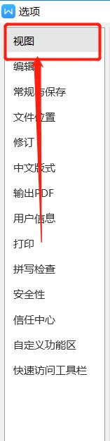 在选项页面,点击左侧的【视图】