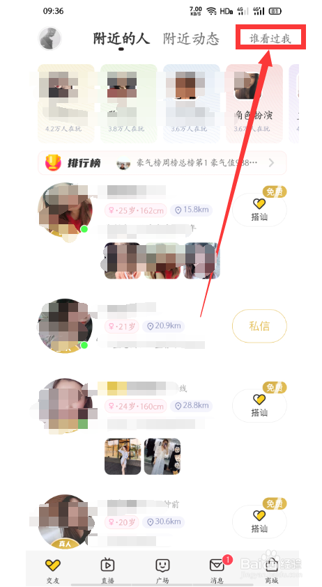 第一步:打开他趣,点击右上角【谁看过我】