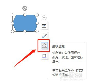 点击选中文档中的流程图:显示,点击右边的【外形填充】图标