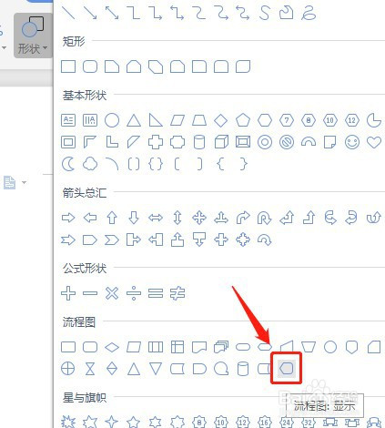 在外形里面找到流程图里面的流程图:显示图标,单击流程图:显示