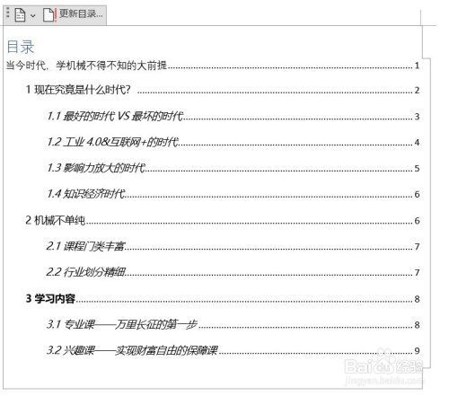 第六步,后期若是因为点窜,删减文档而需要更新目次时,只需要点击主动更新目次即可。