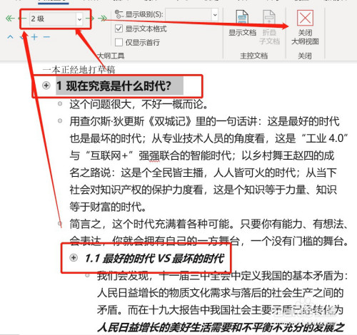 第二步,点窜同一题目品级及正文,以防在主动生当作目次时因为题目没有同一漏失落某一部门,调整同一后封闭视图。