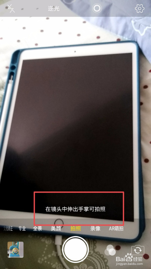 (4)选择后,这时提醒“在镜头中伸出手掌可摄影”;