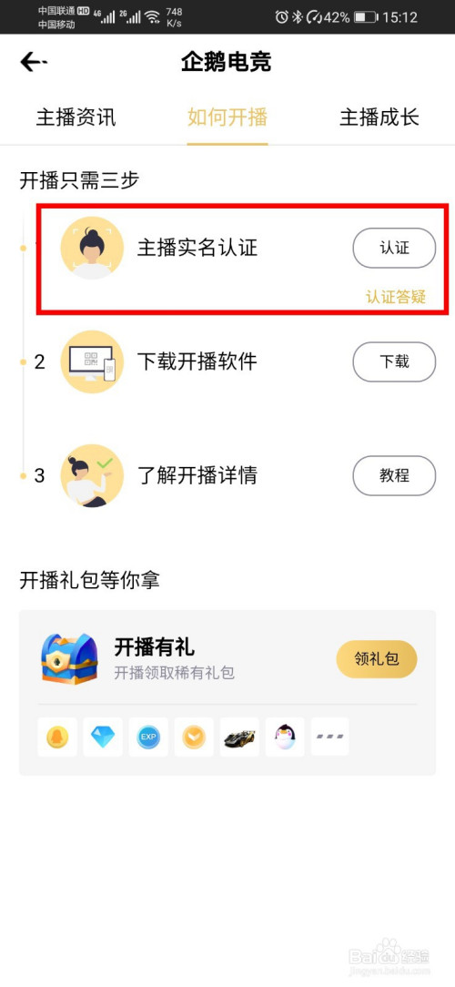 - 打开后,点击“本家儿播实名认证”。