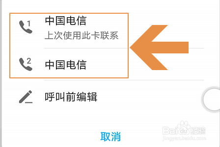若是没有设置默认拨号卡的话,我们给别人打德律风的时辰,系统城市弹出下图所示的窗口,要我们选择卡1或者是卡2;