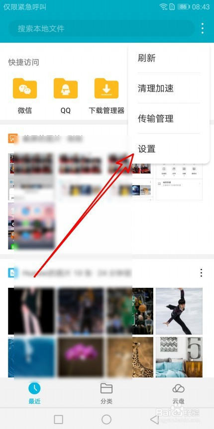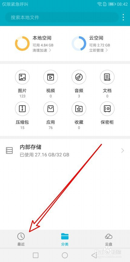 然后再打开的文件办理窗口,点击比来的按钮。