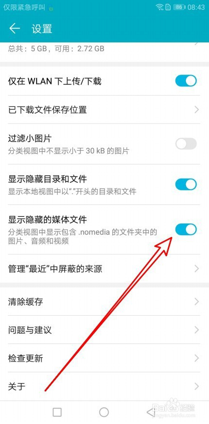 接下来在打开的设置窗口找到显示埋没的媒体文件设置项。