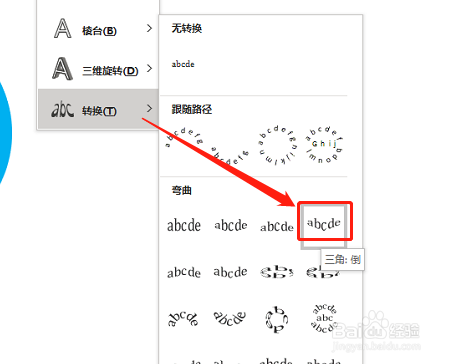 3.然后,在“转换”中,选择“倒三角”结果即可。
