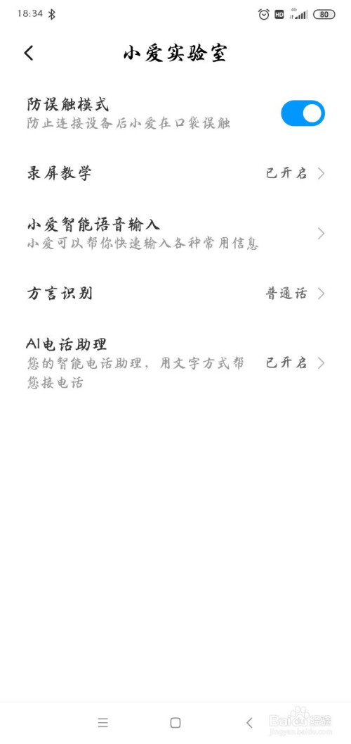 又好比点击“小爱尝试室”,进入小爱尝试室的设置页面,可以完当作对“录屏讲授”、“方言识别”等的设置;