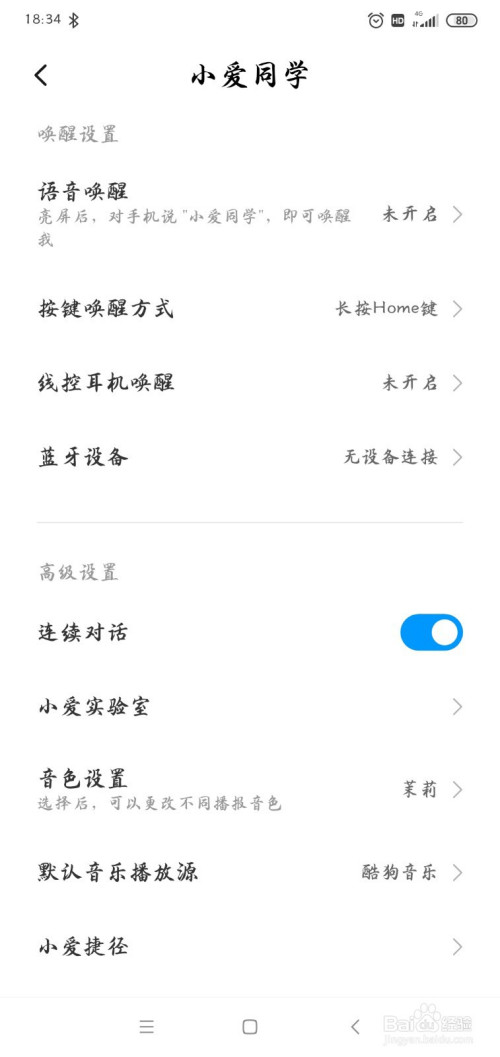 点击“小爱同窗”进入小爱同窗设置界面,可以实现对语音助手的多项设置操作;