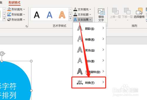 3.然后,在“转换”中,选择“不法则圆形”结果即可。