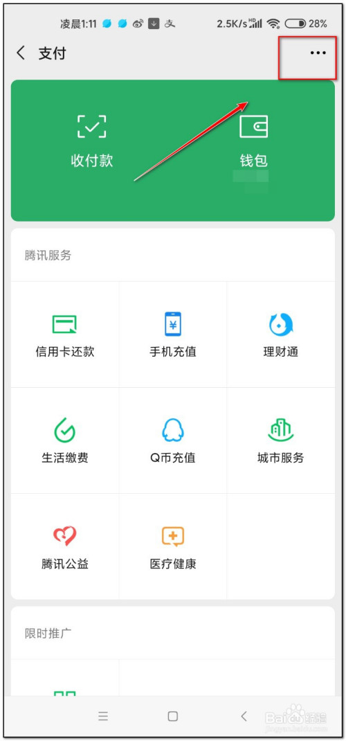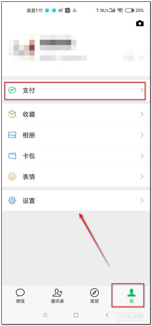 在“我”界面点击“支付”
