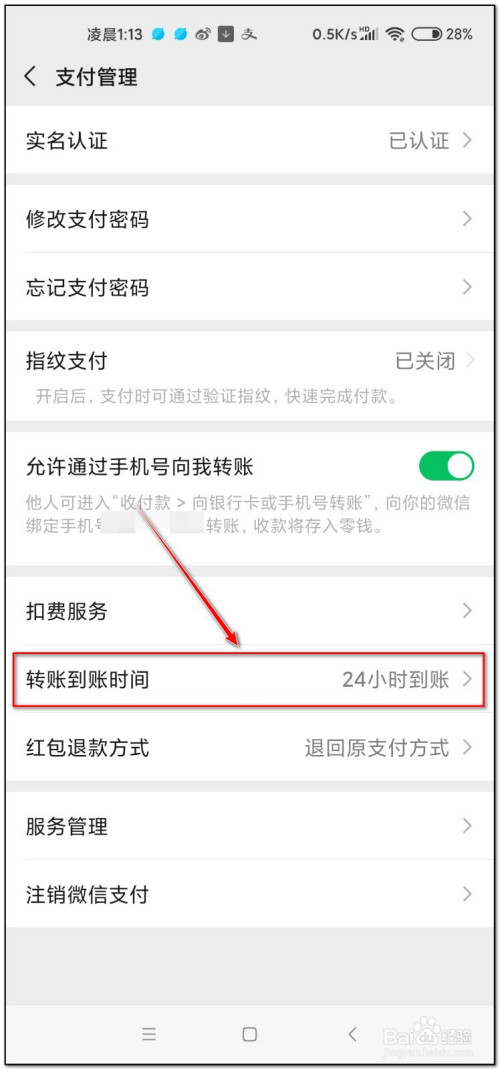 点击“转账到账时候”