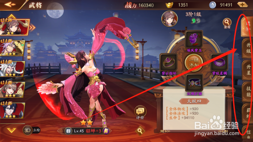 打开武将,进行武将进阶、进级等操作,加强武将战斗力