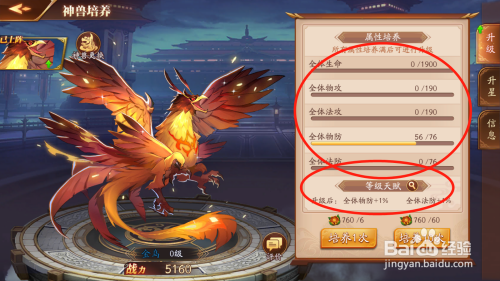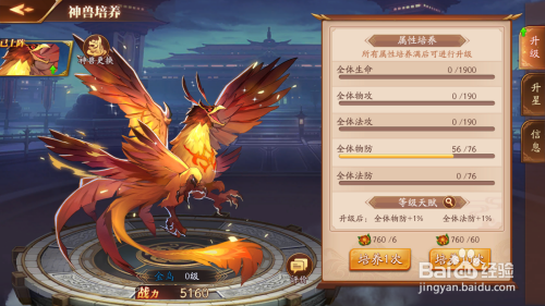 可以看到当前的神兽属性,以及进级后的属性