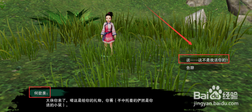最后,我们飞到龙首山山顶红框处与【何歆羡】进行对话,对话完毕后,我们就完当作了宠物奇遇冲弱心啦~