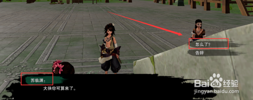在阶梯处,找到【苏临渊】与【何歆羡】,先和【苏临渊】对话,再和【何歆羡】对话,最后再和【苏临渊】对话一次。