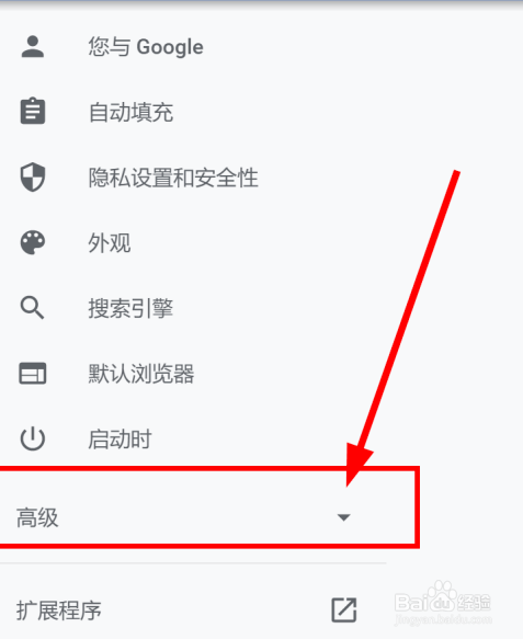 在设置界面,点击左边菜单中的“高级”,如图所示