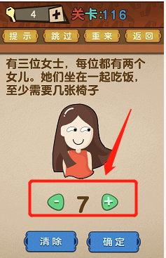 最强的大脑第116关:有三位密斯,每位都有两个女儿。她们坐在一路吃饭至少需要几张椅子?谜底【7】张