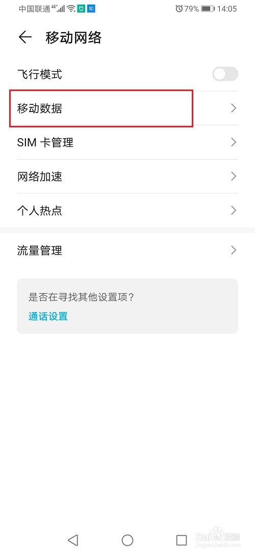 第二步打消华为手机流量套餐限制之后,点击设置->移动收集->移动数据