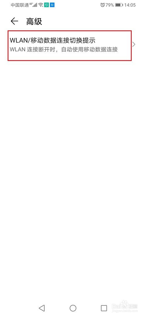 第四步进去高级之后,点击WLAN/移动数据毗连切换提醒