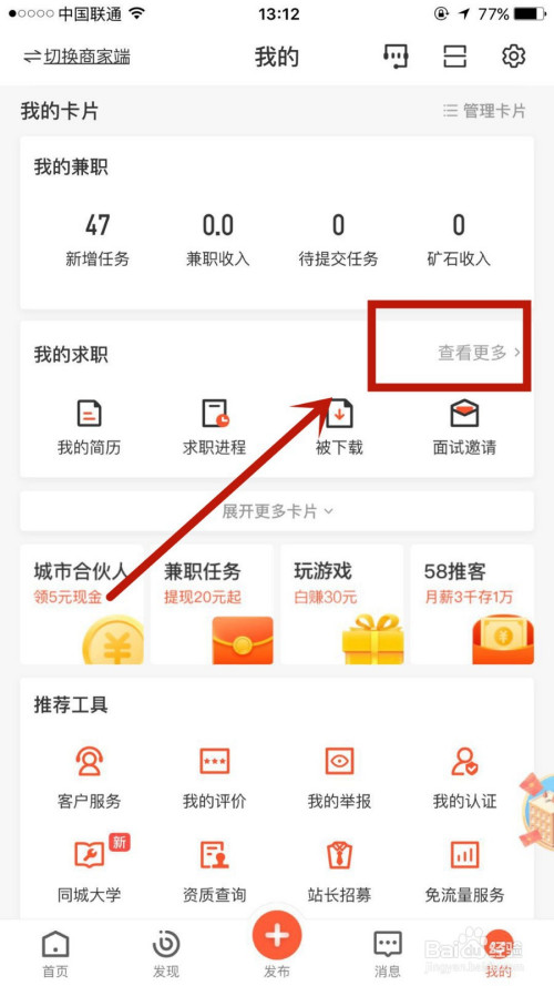 紧接着,点击进入我的求职后的查看更多选项进入。
