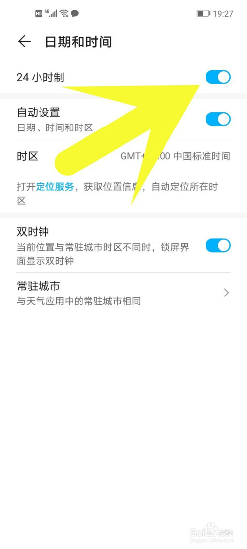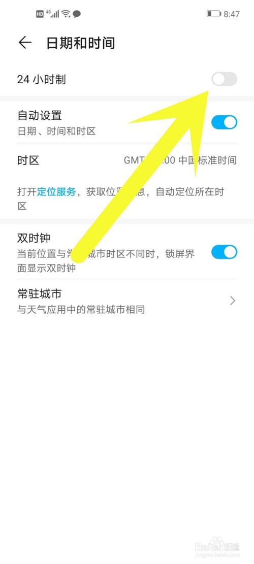 第一项就是24小时制的开关,这里直接点击它的开关开启它。